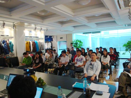 為了共同探討服裝外貿(mào)業(yè)務(wù)發(fā)展方向,拓展業(yè)務(wù)員之間的交流平臺(tái),溝通在業(yè)務(wù)過程中解決問題的經(jīng)驗(yàn)方法,5月21日下午,我司開展了由業(yè)務(wù)十一部主辦,各部室業(yè)務(wù)員共同參加的業(yè)務(wù)交流沙龍會(huì)。此次業(yè)務(wù)沙龍?zhí)匮巳毡救杖炯夹g(shù)顧問古林先生主講。他結(jié)合我司的情況,在工廠管理的基本知識(shí)、不良率的改善和效率的提高等方面進(jìn)行講解。過程中通過生動(dòng)的視屏對(duì)比,引導(dǎo)大家自己找方法改善問題,讓與會(huì)人員發(fā)現(xiàn)我們?cè)诠S的操作中還有能夠提高的空間。
