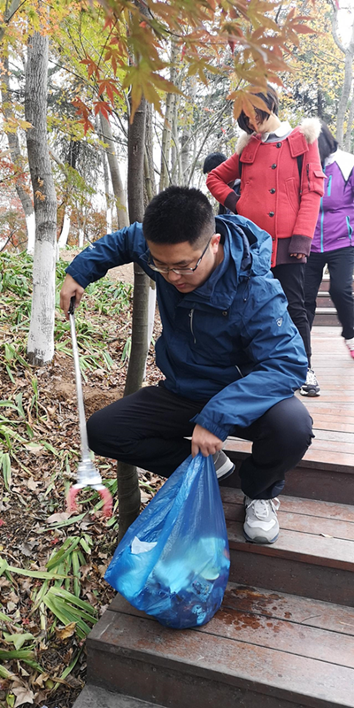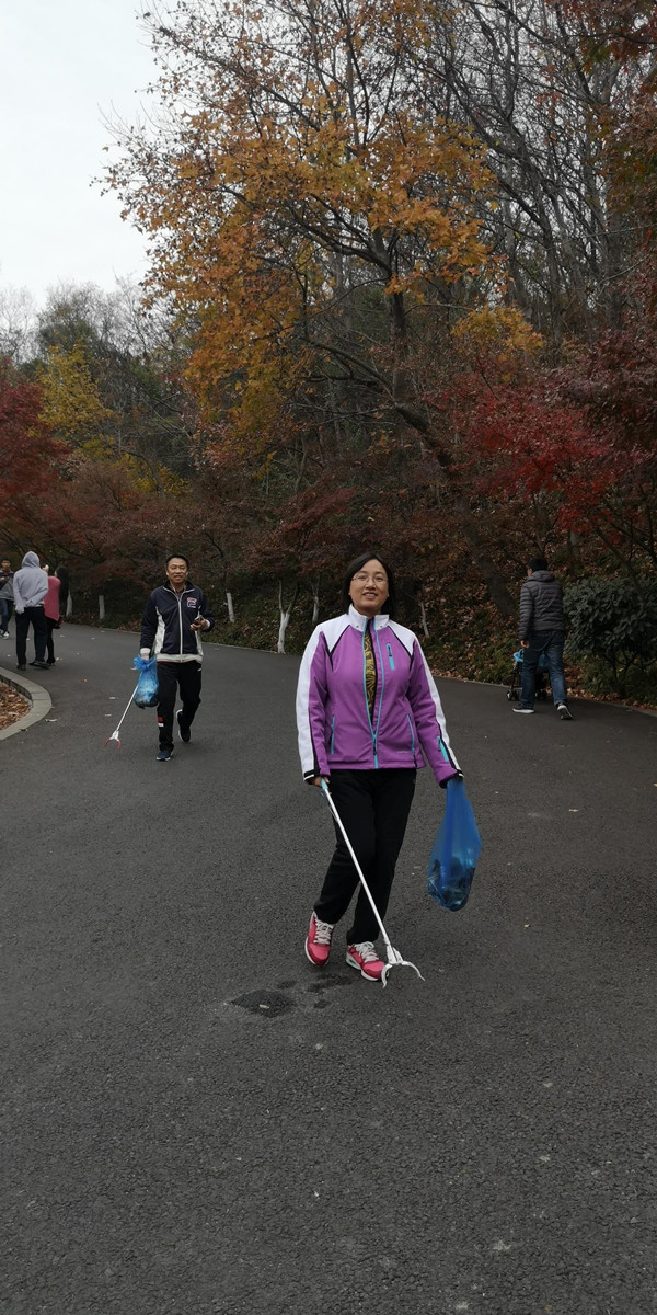 位于長江南岸的棲霞山被譽為“金陵第一明秀山”,素有“六朝勝跡”之稱。冬天的棲霞山,落葉如歌,漫山紅葉依山勢起伏,色彩濃郁,呈現(xiàn)出層林盡染的絢麗景觀。大家興致勃勃、拾階而上,每個人手中都拿著一個塑料袋,一路走,一路撿,沿途將散落在路邊、綠化叢里的礦泉水瓶、果皮、紙屑及煙頭等各種垃圾一并撿起。在撿垃圾的同時大家一路上歡聲笑語,交流感情,在用實際行動踐行環(huán)境保護意識的同時,也讓自己的心情放了個假。待到活動結(jié)束集合時,不少人手中都提著滿滿的一袋垃圾,大家相互比較著自己的勞動“成果”,雖然都氣喘吁吁,但是沒人喊累,大家紛紛表示,能為環(huán)保事業(yè)做出自己的一份貢獻,讓大自然變得干凈,覺得非常值得,意義非凡。