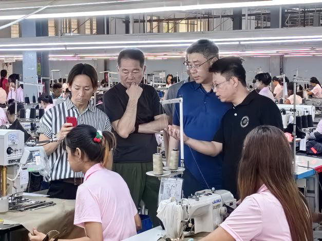 在緬期間,公司生產(chǎn)經(jīng)營管理團(tuán)隊(duì)先后接待了到訪的部分重點(diǎn)出口客戶,雙方就進(jìn)一步加強(qiáng)合作深入交換意見,并達(dá)成共識(shí)。近年來,國際公司紡織服裝出口板塊依托境外生產(chǎn)基地,為公司“工貿(mào)技”結(jié)合轉(zhuǎn)型、境內(nèi)外聯(lián)動(dòng)布局,為業(yè)務(wù)部門牽頭、生產(chǎn)環(huán)節(jié)可控、研發(fā)設(shè)計(jì)高效的產(chǎn)業(yè)化供應(yīng)鏈平臺(tái)打下堅(jiān)實(shí)基礎(chǔ)。生產(chǎn)經(jīng)營管理團(tuán)隊(duì)還介紹了公司即將在孟加拉國建設(shè)生產(chǎn)基地及業(yè)務(wù)拓展合作的產(chǎn)業(yè)布局、實(shí)施路徑和推進(jìn)節(jié)點(diǎn),詳細(xì)介紹了公司從工貿(mào)技結(jié)合到工貿(mào)技融合、境內(nèi)外聯(lián)動(dòng)到區(qū)域性聯(lián)動(dòng)的轉(zhuǎn)型升級(jí)舉措。到訪客戶對(duì)公司境外生產(chǎn)基地優(yōu)秀的管理水平、先進(jìn)的生產(chǎn)工藝和精良的生產(chǎn)效率表示認(rèn)可,并就雙方接下來合作細(xì)節(jié)、樣品款式等進(jìn)行深入探討。