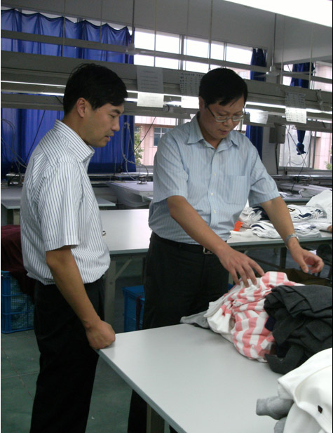 2010年9月3日下午,在集團(tuán)黃宏亮總裁的帶領(lǐng)下,集團(tuán)總裁助理、安委會(huì)副主任張文翔攜總裁辦公室蔣宗明等一行赴我司下屬江蘇海企國際金壇服裝公司檢查指導(dǎo)安全工作,我司總經(jīng)理吳應(yīng)宏、金壇服裝公司孫建東、王巧梅陪同了檢查。