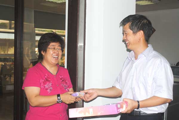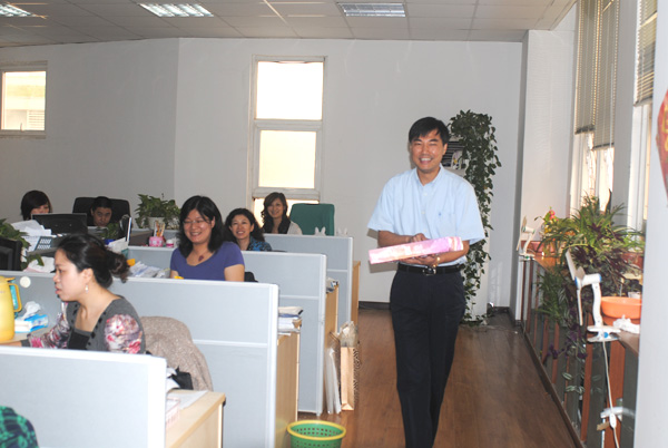 海上升明月,天涯共此時。在中秋佳節(jié)來臨之際,海企國際董事長王學峰、總經理吳應宏在9月28日上午來到公司各部室,親手將飽含公司領導關愛之情的中秋月餅送到每一位員工手中,并向員工分送了節(jié)日的祝福。甜甜的月餅,暖到了每個人的心里。大家相信同心協(xié)力,定能從容面對金融海嘯的挑戰(zhàn)。