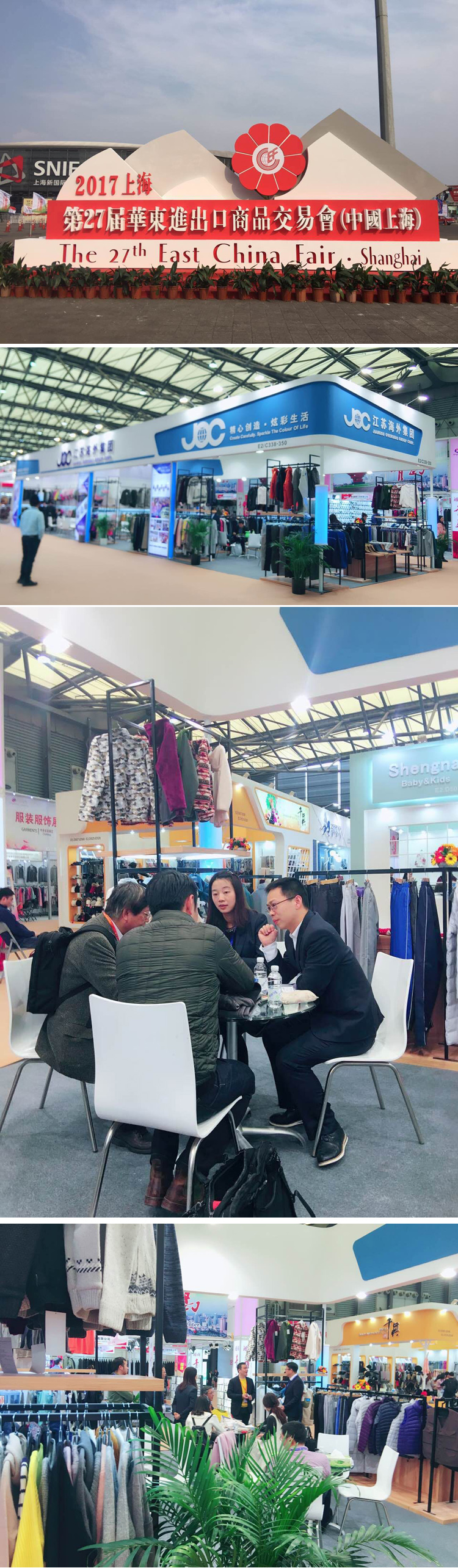 素有“新春外貿(mào)第一展”之稱的中國華東進(jìn)出口商品交易會 (第27屆)于3月1日起在上海新國際博覽中心正式開幕。國際公司派出業(yè)務(wù)一部、業(yè)務(wù)九部、歐美事業(yè)部和南通公司參加了展會,展示了針織服裝、運(yùn)動服飾、精品工裝、羽絨服、毛衣和家紡等產(chǎn)品。